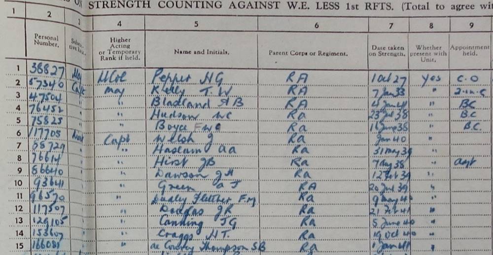 Field Regiment Royal Artillery Return of Officers Next → An extract from the 70th Field Regiment’s Return of Officers from February 1943.